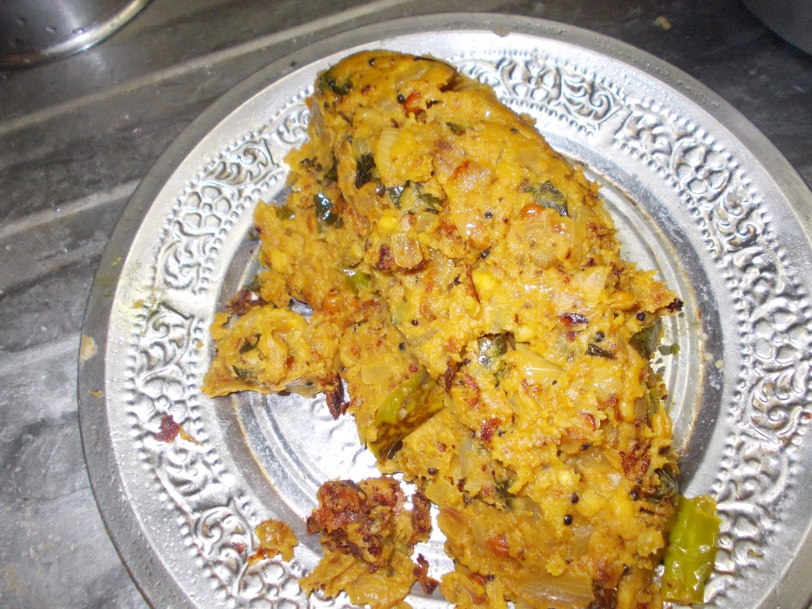 4. Add turmeric, salt, tamrind juice into the mashed kizhangu, mix well and keep aside